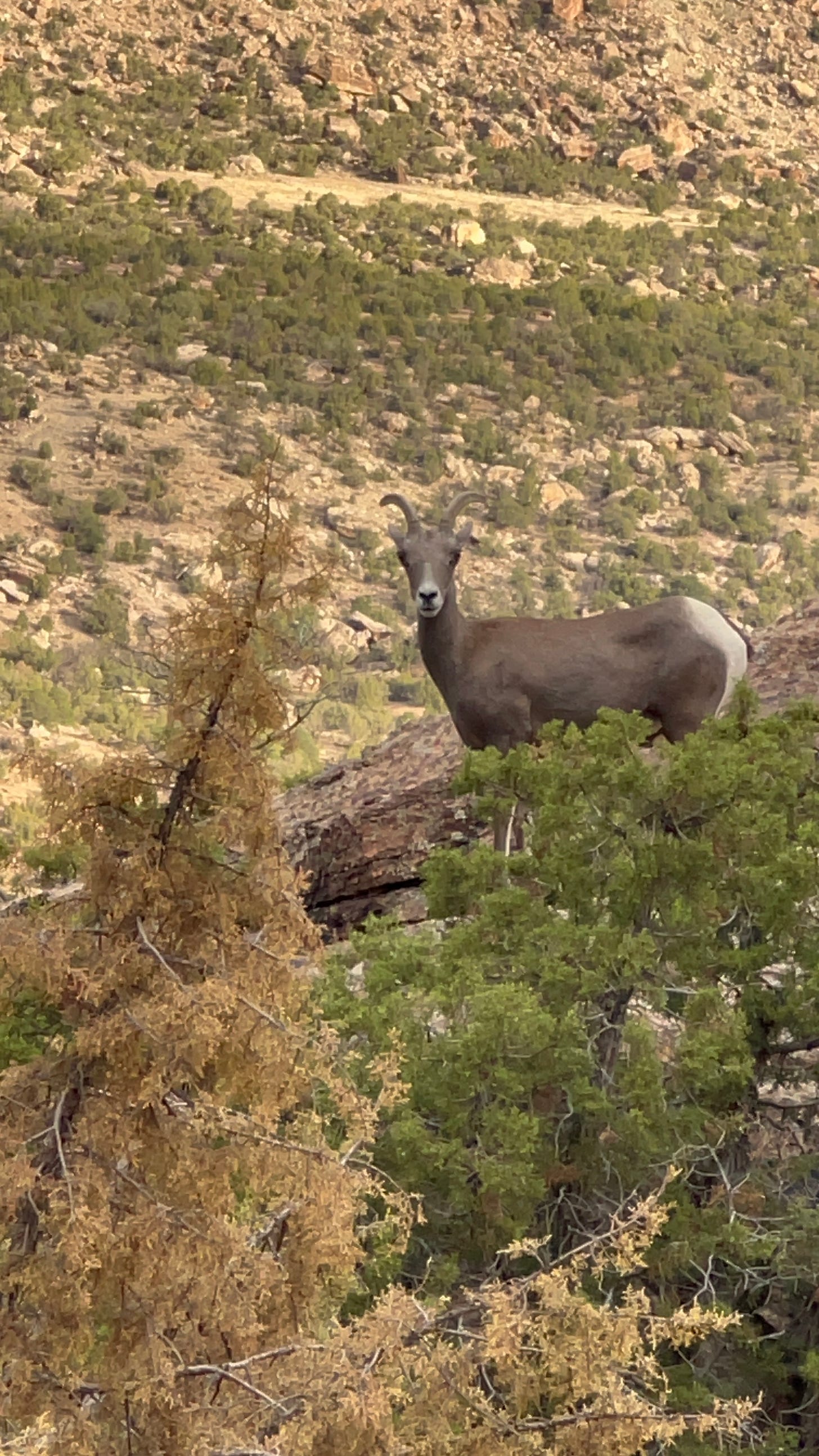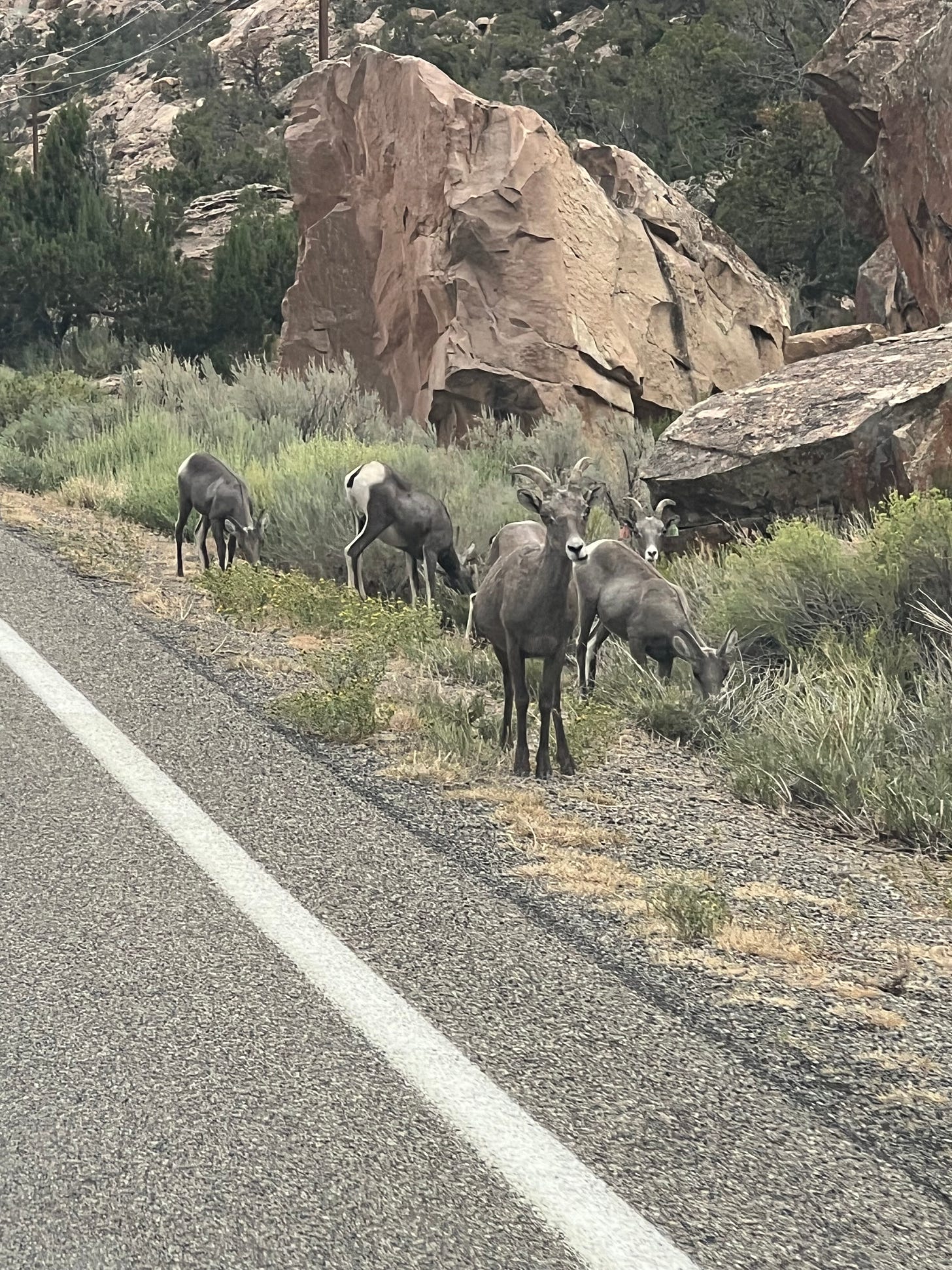 I got to see a bobcat this morning on the way in, but didn’t get a chance to take a picture. I was, however, rewarded with seeing this herd of bighorn sheep one last time before I left.