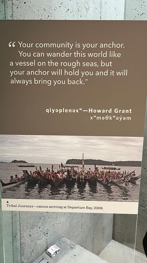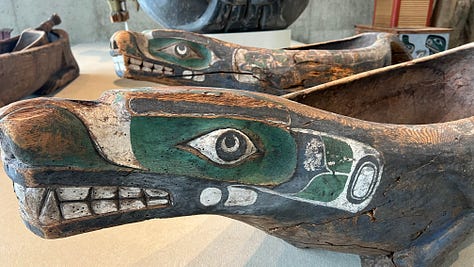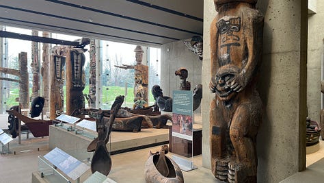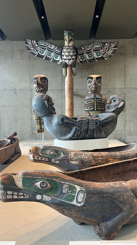 Wednesday’s highlight was visiting the museum of anthropology at the University of British Columbia. My pal Shawn had recommended it earlier and it did not disappoint. The museum hosts a massive collection of items from Indigenous cultures around the world but especially those of the western region of Canada. The totem poles, which I had never seen in person before, were especially powerful.
