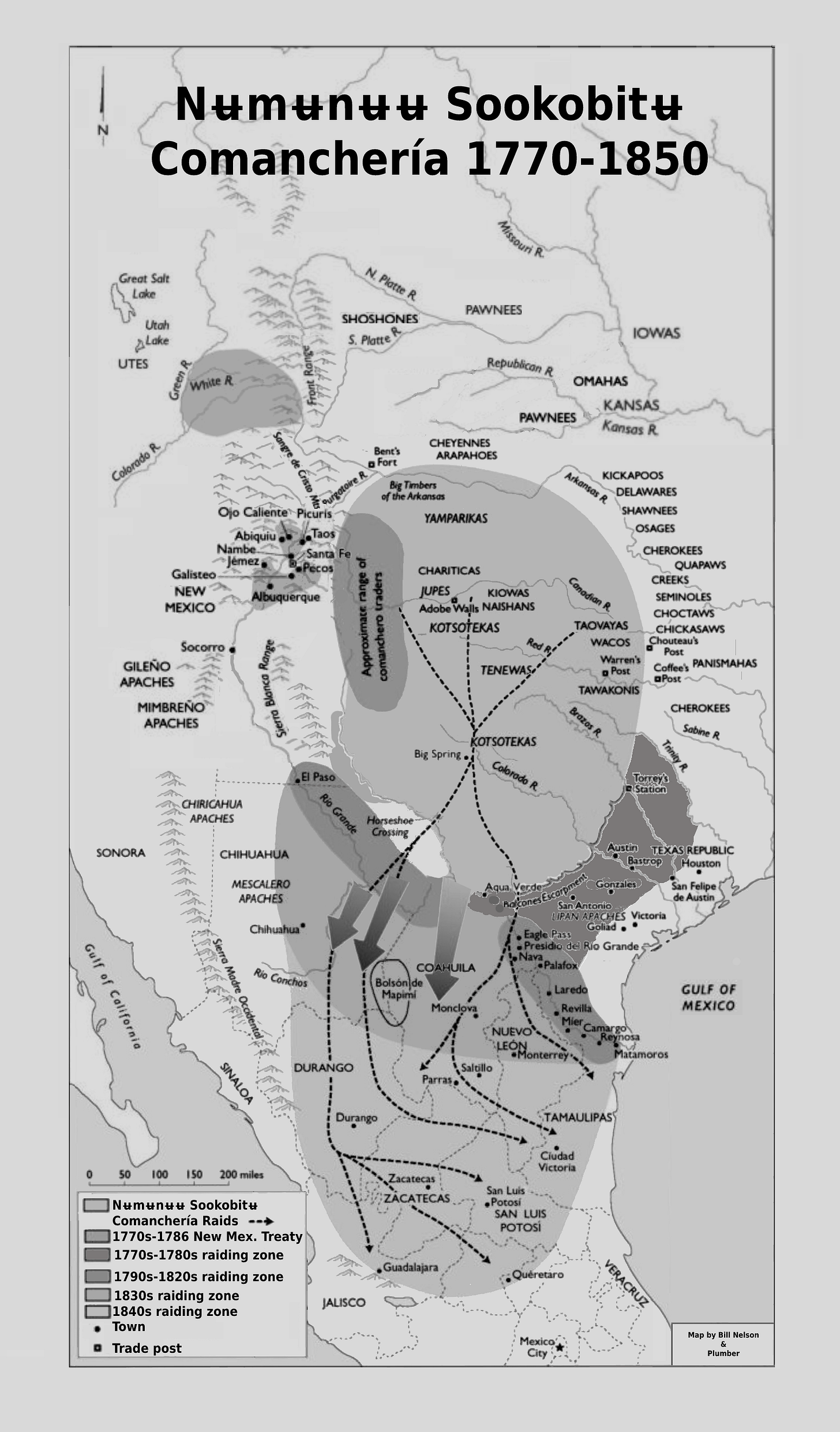 Now, Comanches of the 1700s and 1800s were raiders. Reading features heavily into the Comanche economy, as it did many other economies of the Southwest. And Comanche were really, really good at it. They had at one time a huge zone of control known now as Comancheria. You could read more about this in Pekka Hamalainen’s The Comanche Empire, which coincidentally was foundational in helping me become a scholar of Indigenous and environmental history.