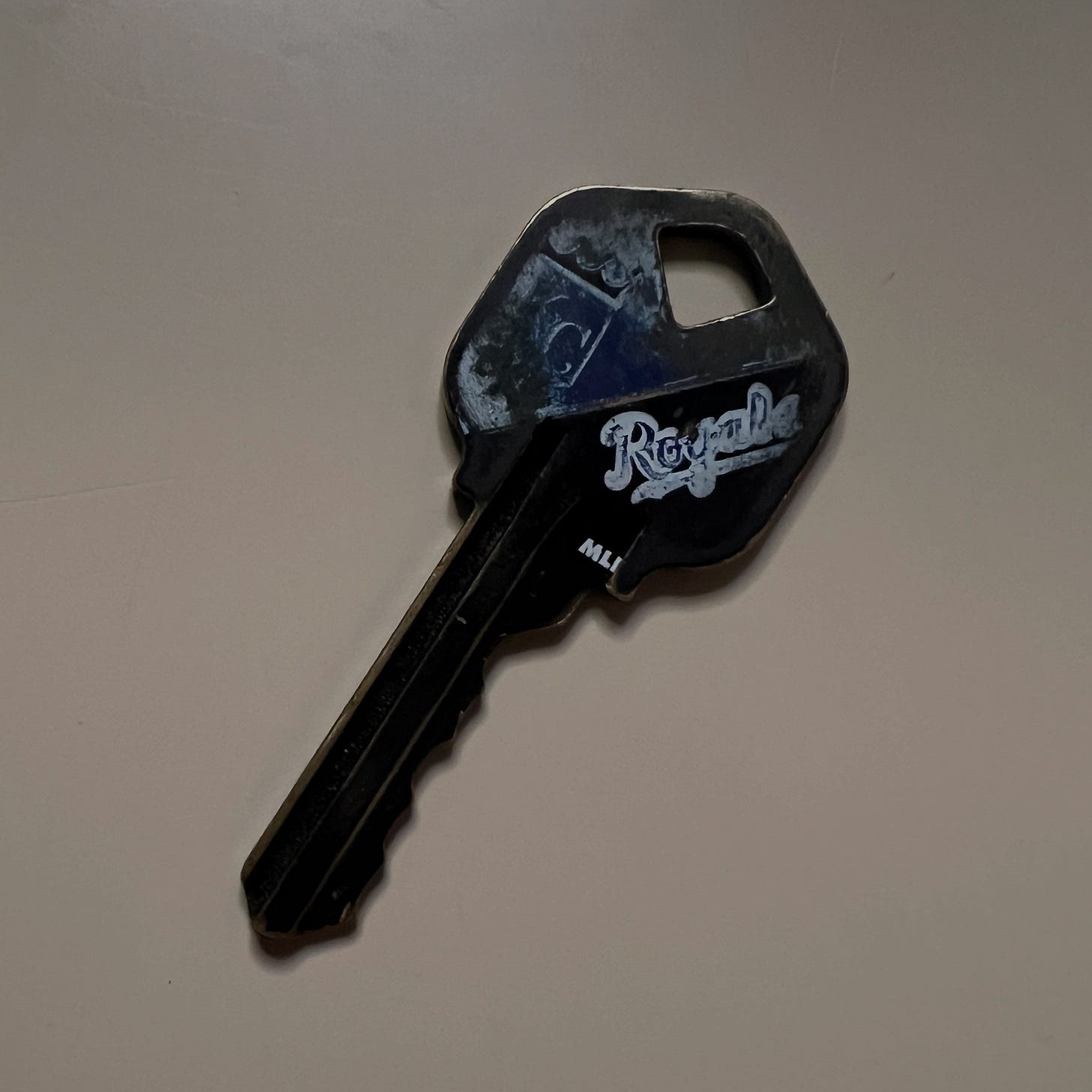 So here’s one of my favorite possessions: it’s a very simple house key. If you look closely, you’ll see the Kansas City Royals logo on it which has worn away over time. Anyway, 11 years ago, I’m going through my divorce and I don’t really have a place to stay. I go back to Wichita of all places at least so I can finish my masters degree and figure out what would come next. My buddy Levi demanded I stay with his family while I got back on my feet. God knows they did not need some mopey guy hanging around. But that family nursed me back to life. And that dude would never hear any talk of me not having a home or a family insisting, my home and family was right there in Wichita. Anyway, I was cleaning the house today and decided to take some old keys off of the ring. But not this one. This one stays with me wherever I go.