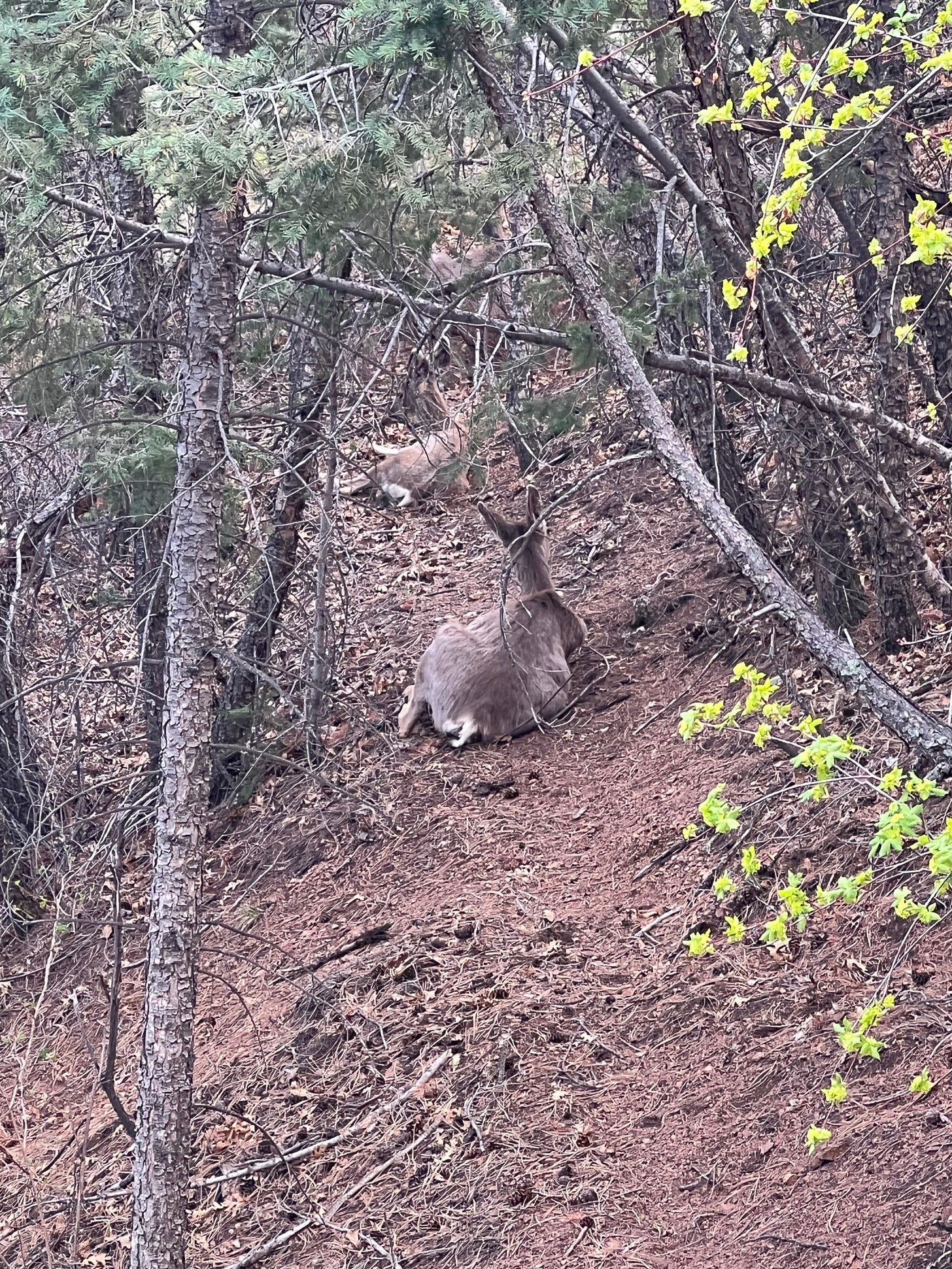 Coming down was somehow even better. You’re not supposed to walk back down the tracks, but instead go down Barr Trail. Folks, the views from Barr Trail were just spectacular. You got to see all sorts of mountain vistas, huge boulders, trees of every kind, and yes, more chipmunks and more mule deer. It’s really just a series of switchbacks through some absolutely gorgeous wilderness. Had we more time, we would have dallied so I could take even more pictures. But believe me, it was so amazing.