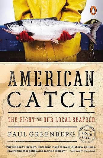 Paul Greenberg, American Catch: The Fight for Our Local Seafood. So this book is more investigative journalism, but I tend to think of journalists as real-time historians anyway. What Greenberg does is examine different fisheries in the United States, including lobster, oysters, and shrimp to talk about the challenges global economies and environmental change present to both aquatic species and local communities.
