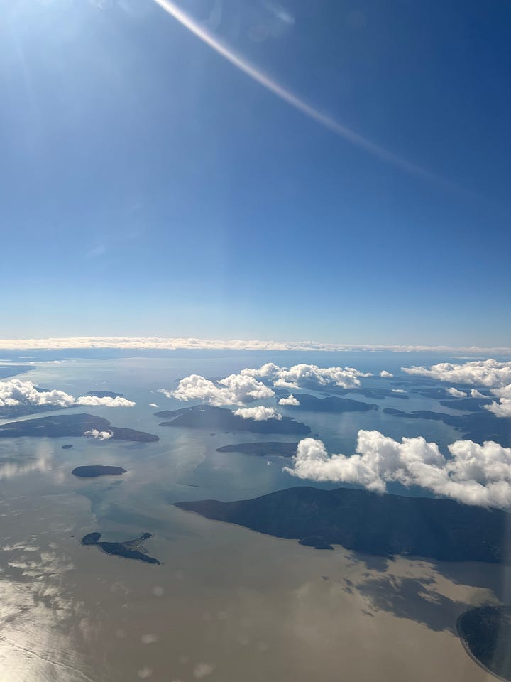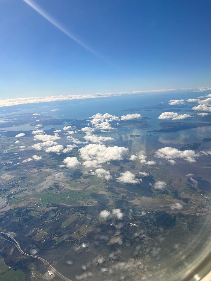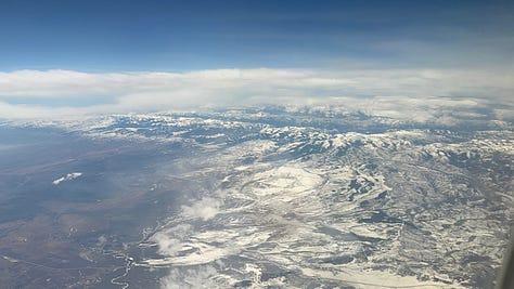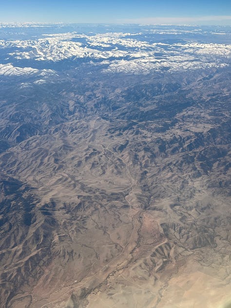 I used to be terrified for flying but now I can’t get back in the air fast enough. I have a bit of a love affair with the Golden Age of Flight (historians are probably the humans most susceptible to nostalgia) with their Pan Am airways, big seats, full meals, and smoking sections. Ok, so not all of that, but you get the idea. Since Amy doesn’t like the window and I love it, I got some amazing views as we headed northwest.