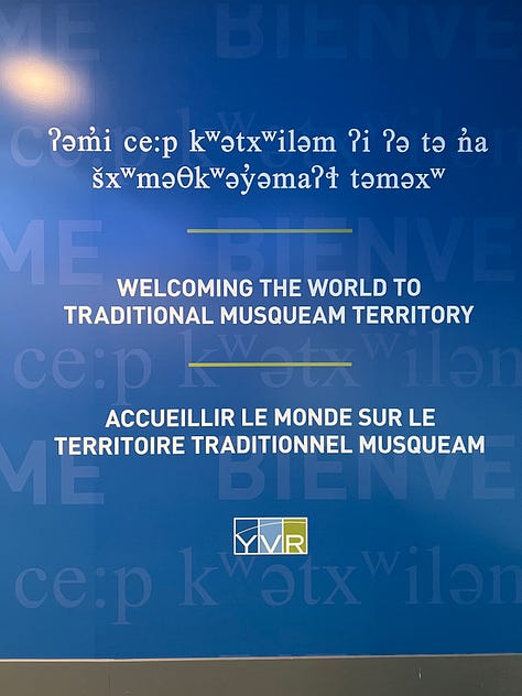 If there’s a downside of this trip, it’s that I’m missing the Denver Powwow, one of the largest in the country, and a lot of the Tribes I work with are usually there. So it was nice to see Vancouver’s Indigenous heritage presented right up front for new arrivals.